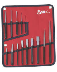 Punch and chisel setGenius Tools Pin punches: 2, 3, 4, 5 & 6mmFlat chisels: 6, 10, 12, 14 & 16mmLong taper l...