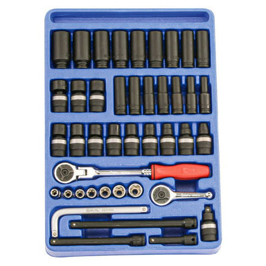 Features high torque, quick release, 72 gear teeth ratchets that allow for a 5 degree sweep 6pt SAE and Metric standard and deep wall sockets in 1...