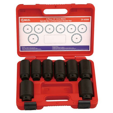 Thin wall impact socket set - 8 pcsGenius tools 1/2" Drive MET 12 pans 29, 30, 32, 34, 36, 38 and 39mmSpec...