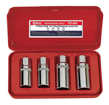 Stud remover socket setGenius toolsDrive : 1/2" 1/4", 5/16", 3/8" & 7/16"Specifications Brand: Genius Status: Active Manu...