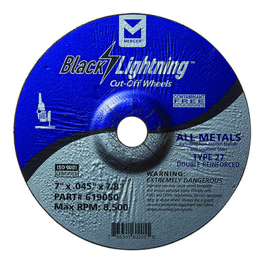 Mercer M619050-25 - 7"x0.045x7/8" Black Lightning Cut-Off Wheel for Stainless Steel - Type 27 Depressed Center (25/pkg) Mercer M619050-25 - 7"x0.045x7/8" Black Lightning Cut-Off Wheel for Stainless Steel - Type 27 Depressed Center (25/pkg)