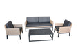 PatioZone 4Pcs Conversation Set with 4" Quick-Dry Cushions and Aluminum Frame (MOSS-DR0827T) - Tan / Black