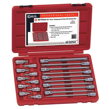 Star bit socket set - 20 pcsGenius tools 3/8" DriveSpecifications Brand: Genius Status: Active Manufacturer Part #: BS...