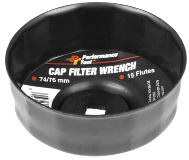 Oil filter wrenchPerformance Tool74/76mm, 15FLSpecifications Brand: Performance Tools Status: Discontinued Manufacturer Pa...