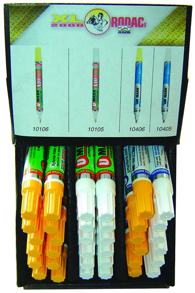 Marker kit by RODAC of 36 pièces. Made with fast drying paint. Marks on metals, plastics, glass and more. Contains 12 white and 12 yellow regular m...