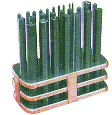 Set of 28 RODAC transfer punches to accurately locate the center before drilling a hole. Stand included. Sizes: 3/32" to 1/2" at 64th and one 17/32...