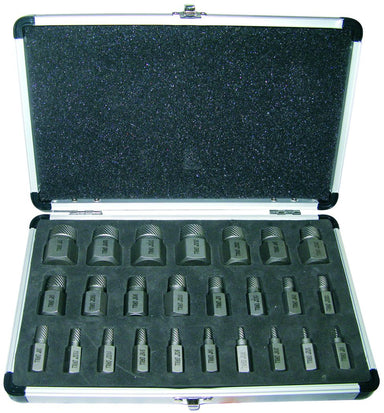Set of 25 bolt extractors: 1/8", 5/32", 3/16", 7/32", 1/4", 9/32", 5/16", 11/32", 3/8", 13/32", 7/16", 15/32", 1/2", 17/32", 9/16", 19/32", 5/8", 2...