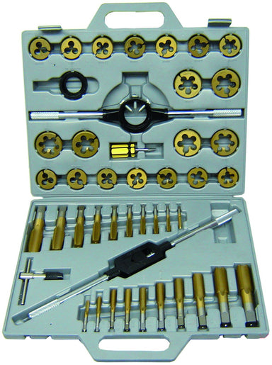 The RODAC Tap and Die Set offers 45 MET Tungsten Steel pièces M6 x 1.0 to M24 x 1.5. This set is perfect for creating new threads or repairing dama...