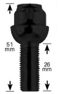 Ceco CDW41808BK - (4) Black Bolts 12x1.5 Radius Seat Wheel Locks 26 mm Thread