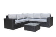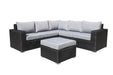 MOSS MOSS-0908NC - Carolina Collection, 6 pcs modular black flat wicker and aluminum structure including ottoman, with grey cushion and glass for coffee table (3 boxes)