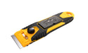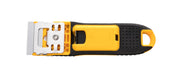 The scraper comes with six (6) premium stainless-steel blades in a storage case. The unique keyed blade design coupled with a stainless-steel support bracket secures the blade. Even during heavy use, the blade will not slip or lose power.