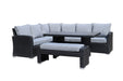PatioZone 4Pcs Dining Corner Set Flat Wicker with 4" Olefin Cushions and Aluminum Frame (MOSS-0924NCC) - Grey / Light Grey