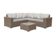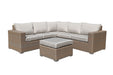 PatioZone 6Pcs Modular Flat Wicker Sofa Set with 4" Textilene Cushions and Aluminum Frame (MOSS-0908BGB) - Grey / Beige
